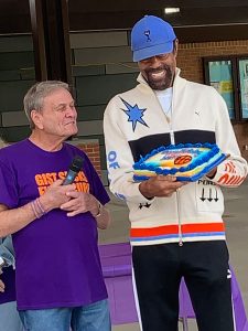 GCRF, Robert Stutman presenting Walt Frazer with 80th Birthday Cake.